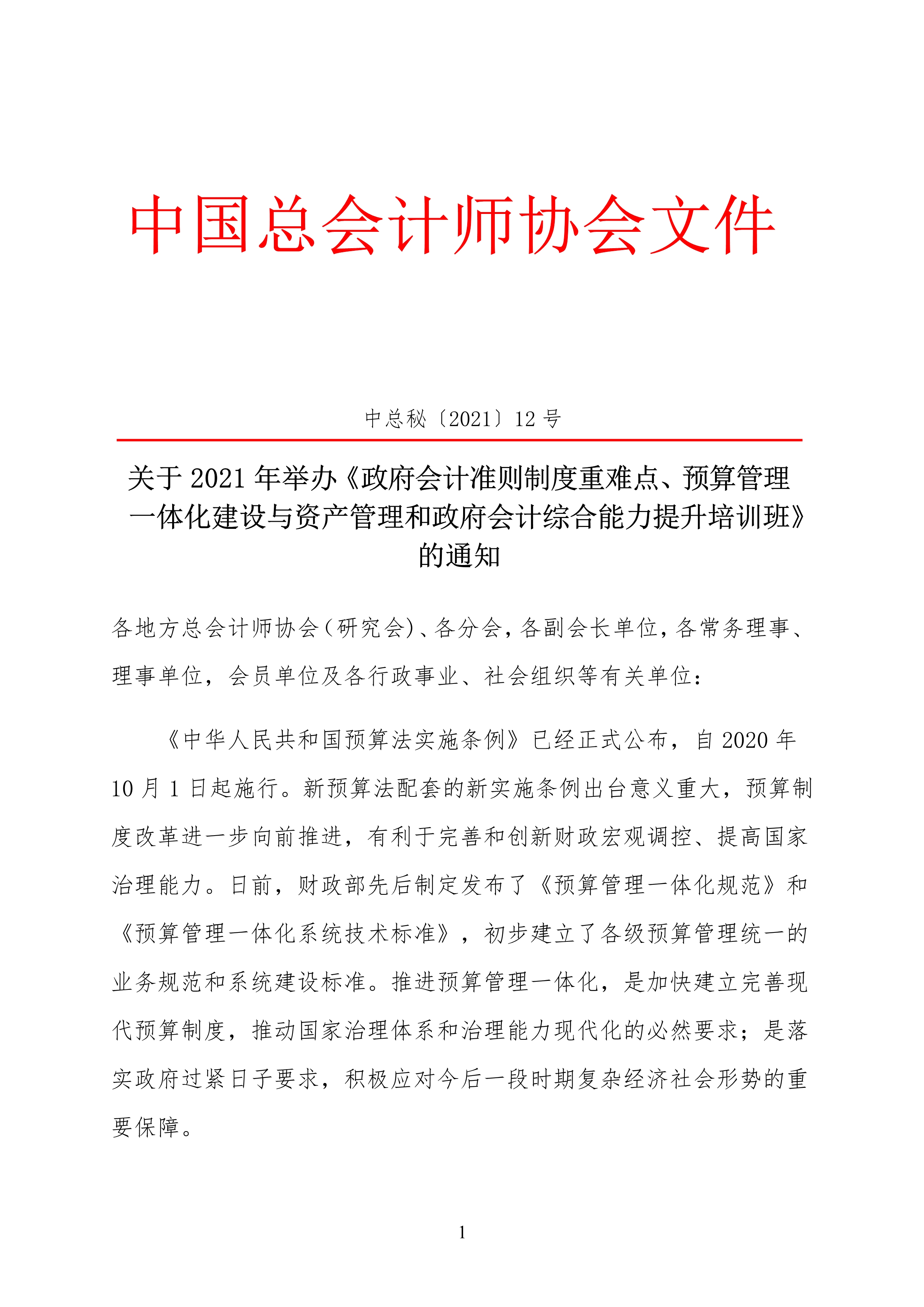 附件:中總秘[2021] 12號 關(guān)于2021年舉辦《政府會(huì)計(jì)準(zhǔn)則制度重難點(diǎn)、預(yù)算管理一體化建設(shè)與資產(chǎn)管理和政府會(huì)計(jì)綜合能力提升培訓(xùn)班》的通知/upload/edit/file/20210220/20210220163521_64580.pdf