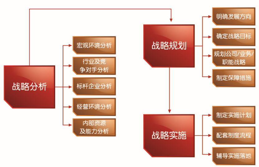 華夏經(jīng)緯憑借多年大中型企業(yè)管理咨詢經(jīng)驗,運用先進的戰(zhàn)略工具,協(xié)助企業(yè)制定中長期發(fā)展規(guī)劃,并通過設計配套的管理制度及流程,提高企業(yè)戰(zhàn)略管理水平,同時秉承與客戶共成長的理念,協(xié)助企業(yè)落地實施,推動企業(yè)合理配置資源,增強企業(yè)的競爭優(yōu)勢。
