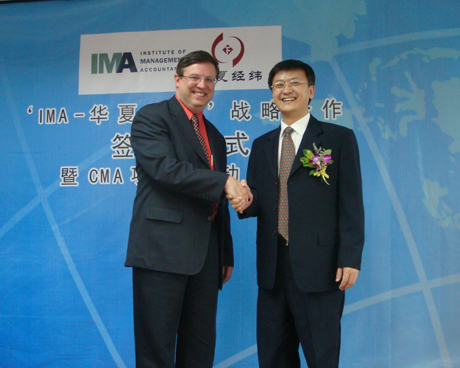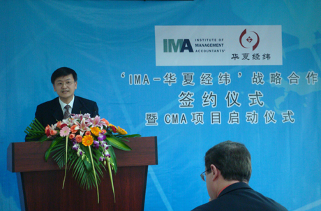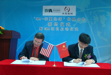 為了推動管理會計在中國的發(fā)展,搭建中國管理會計人才的國際培養(yǎng)平臺,2009年9月13日,華夏經(jīng)緯財務(wù)咨詢(廈門)有限公司與美國管理會計師協(xié)會IMA在廈門市廈禾路富興大廈B幢8樓華夏經(jīng)緯高級培訓(xùn)室舉行隆重的項目合作簽約儀式。華夏經(jīng)緯財務(wù)咨詢(廈門)有限公司正式成為IMA在中國第五家、福建地區(qū)首家戰(zhàn)略合作伙伴。雙方戰(zhàn)略合作協(xié)議的簽訂,標志著華夏經(jīng)緯CMA培訓(xùn)項目正式啟動。