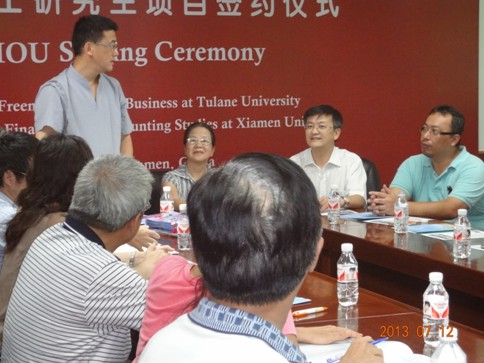 座談會在廈門大學(xué)會計發(fā)展研究中心會議廳舉行。參加接待的主要有:廈門市總會計師協(xié)會副會長、廈門市外商投資企業(yè)會計學(xué)會會長、廈門大學(xué)管理學(xué)院會計系教授、廈門大學(xué)會計發(fā)展研究中心副主任陳少華教授;廈門市總會計師協(xié)會副會長兼秘書長何渝文;廈門市總會計師協(xié)會常務(wù)理事、華夏經(jīng)緯財務(wù)咨詢(廈門)有限公司總裁游相華博士。會議由何渝文副會長主持,游相華博士致歡迎辭。