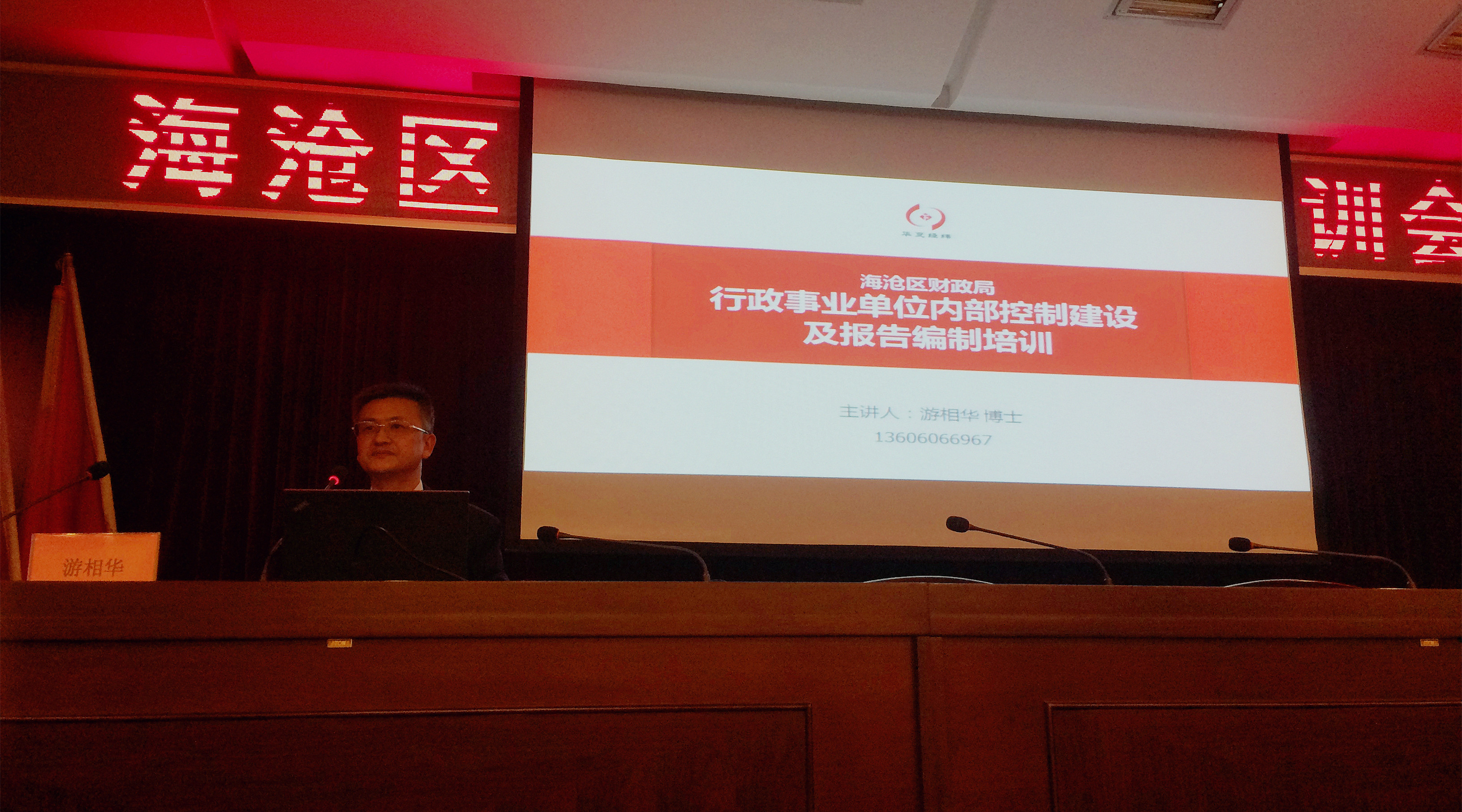2017年3月16日,華夏經緯總裁游相華博士為海滄區(qū)屬行政事業(yè)單位領導及內控負責人開展了主題為“行政事業(yè)單位內部控制建設及報告編制”的輔導培訓。游相華博士以行政事業(yè)單位發(fā)生過的舞弊案例作為切入口,由淺入深,再深入淺出地對行政事業(yè)單位為什么要開展內部控制建設、什么是行政事業(yè)單位的內部控制、如何開展內部控制建設工作、內部控制建設工作中的重點難點問題進行解讀和案例剖析,并對什么是內部控制報告、內部控制報告編制的要點、如何編制內部控制報告進行了深入細致地講解。此次培訓受到了參訓單位的一致好評,為參訓單位樹立內部控制理念,深化內部控制認識,進一步推進海滄區(qū)屬行政事業(yè)單位內部控制建設工作奠定了良好的基礎。