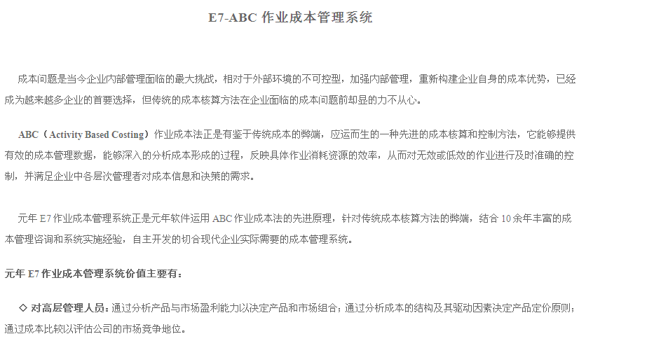 E7-ABC 作業(yè)成本管理系統(tǒng)